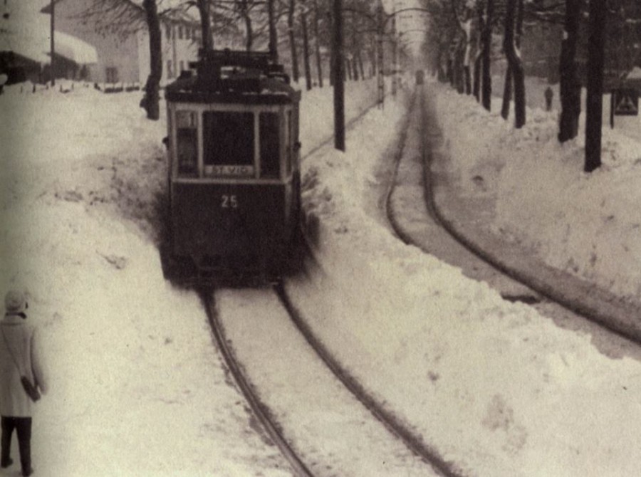Tramvaj v globokem snegu pozimi 1952 v Ljubljani. Foto: Zgodovinski arhiv Ljubljana
