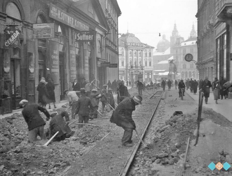 Gradnja proge za tramvaj na Čopovi ulici leta 1934.