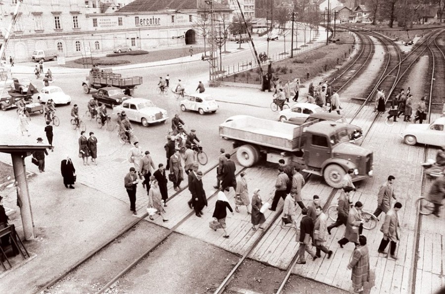 Železniški prehod na Titovi cesti v Ljubljani 1960