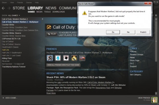 Meni je to pri COD 4 vedno napisalo in če sem dal da, je šlo v igro.