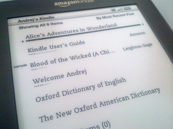 Včeraj je prijatelj prinesel in predstavil novi Amazonov e-bralnik knjig Kindle, ki me je takoj zelo pozitivno presenetil, saj je njegova oblika zares vrhunska in teža tako majhna, da se brez težav lahko primerja s srednje velikimi knjigami. Velikost naprave pa primerljiva s Samsung Tab napravo.